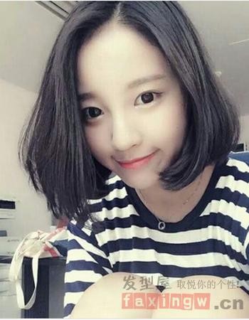 可爱的学生中短发的裁剪,显得清新爽朗很有活力范,而无刘海的处理令造型更平添了一层俏皮与可爱来,很适合校园女生哦。