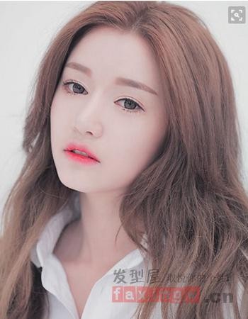 韩国蓬松发型总是给人一种别致的时尚抢眼范,气质的中分与浪漫的长发烫发搭配起来,无刘海搭配上时尚的精致的妆容女神气质显露。