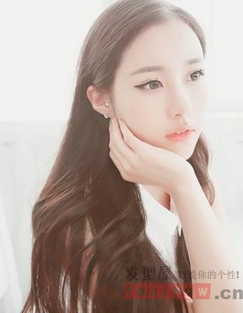 精致的及腰长发烫发发型,个性的微卷比起大卷发来更加含蓄一些,适合温和性子的女生,将两侧的发丝拨于耳后露出光洁的额头来,十分甜美。