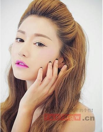 这一款很有女王范的个性公主头发型,清爽的露额发型的处理,将刘海倒梳,而且头顶蓬松的打理,精致而端庄。