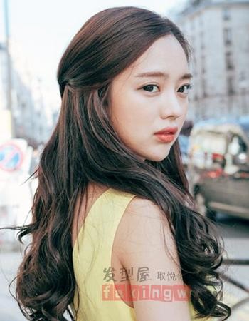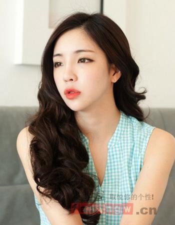 浪漫的韩式大卷发型彰显出十足的轻熟女妩媚来,优雅失则边卷发加上无刘海发型的处理,造型简单而且时尚,将女人味显露得淋漓尽致。