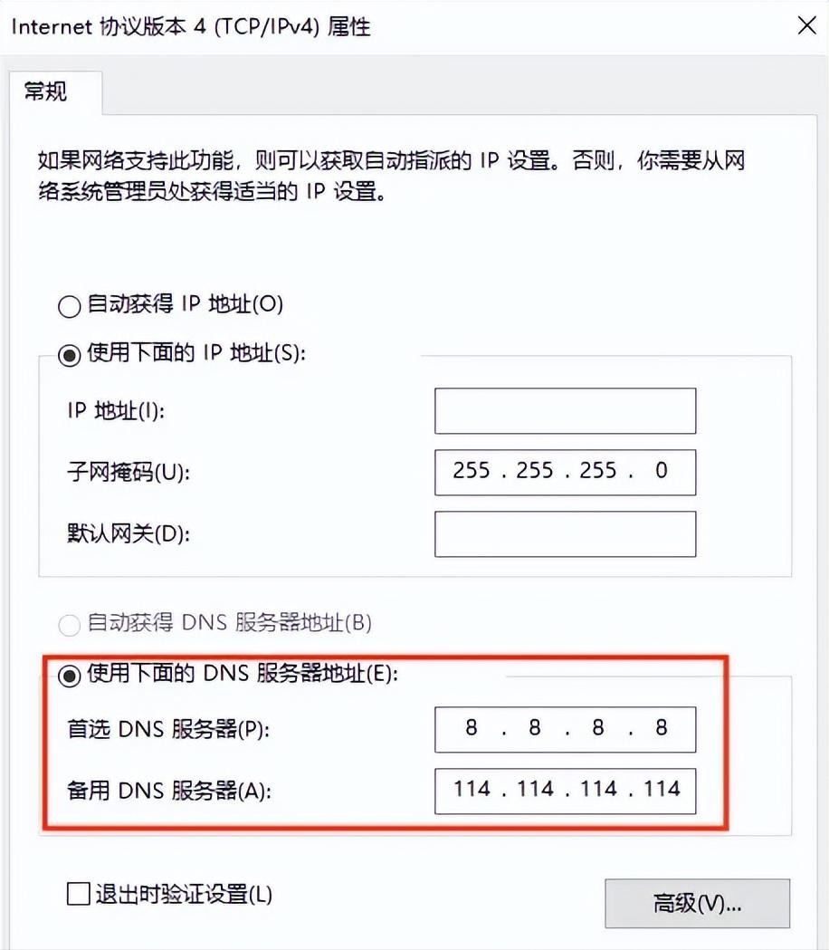 3.更改DNS设置。快捷键「Windows+I」打开设置面板,选择「网络和Internet>以太网>更改适配器选项」,右键选择「属性」,找到「Internet协议版本4(TCP/IPv4)」双击,在打开的界面中可以重新设置「DNS服务器地址」,点击「确定」保存设置。