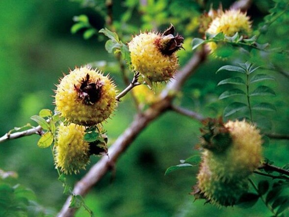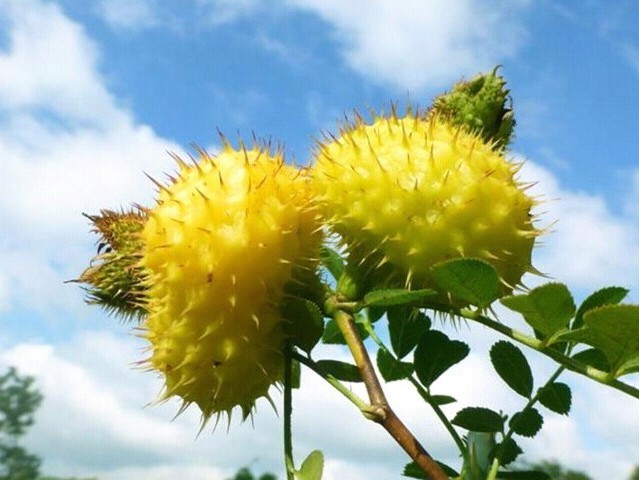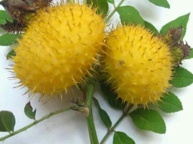 刺梨是蔷薇科蔷薇属植物,喜欢在山区的向阳山坡、谷地及灌木丛中生长。其本身也属灌木类型的植物,高可达2米以上,叶与枝条上密布针刺。倘若不慎触碰,往往令人皮破血流、刻骨铭心。