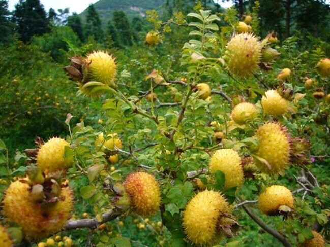 刺梨果对于我们而言,鲜食是最平常的了。这种云、贵、湘、川特有的野生果子,作用是极大的。鲜食外,人们更多的是用来酿制刺梨糯米酒,或者直接晒制成刺梨干,可长久保留食用。刺梨果除了含有大量的维生素c,也含有大量的蛋白质和钙、磷等微量元素,故成为对人类健康有益的神奇野生水果,而受到越来越多人们的青睐,近几年,野生刺梨果的市场价已达每斤20~40元左右。
