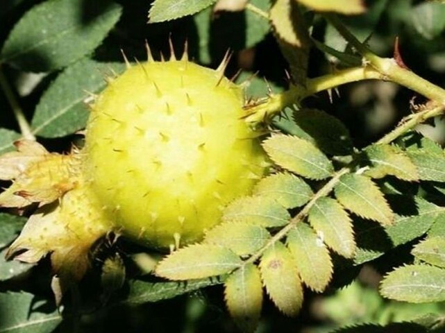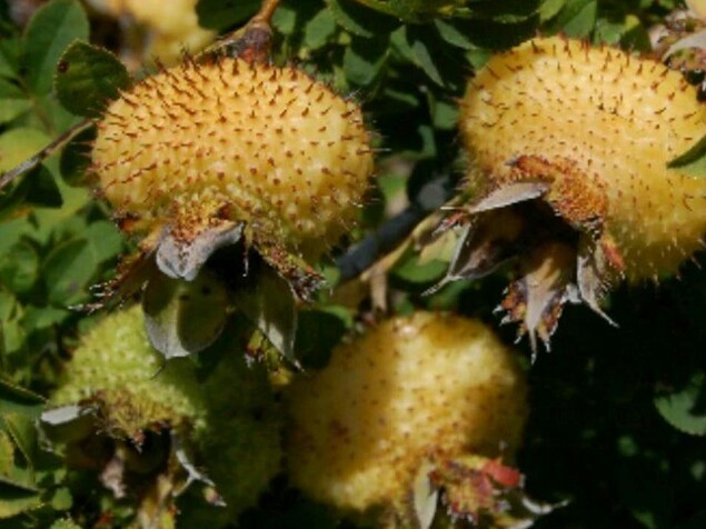 刺梨果每年8月到10月陆续成熟。果子也布满毛刺,表皮黄褐色,而果肉则呈黄白色。成熟的刺梨果有浓郁的果香,微甜,而且含有丰富的维生素C,故被人们称之为维c之王。