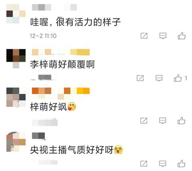 这组动态被发布在网络上之后,很快引发了大众的关注与评论。有网友留言"哇喔,很有活力的样子",有网友表示"李梓萌好颠覆啊",有网友称赞"梓萌好飒",也有网友评论"央视主播气质好好呀"。