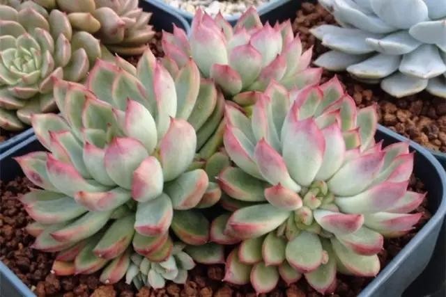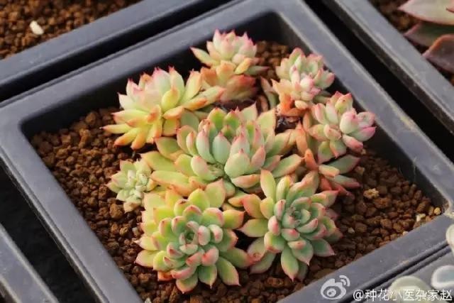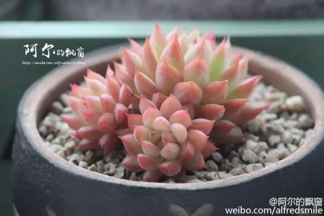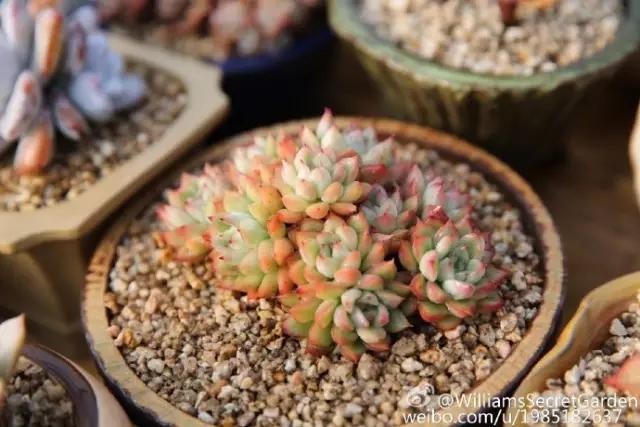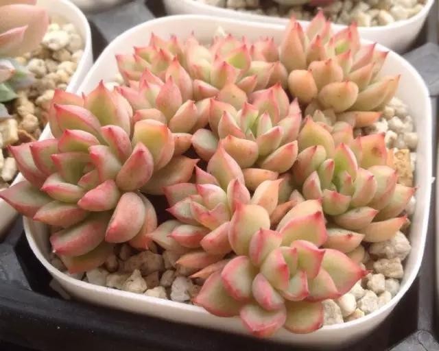 迷你娇小的体型加上春秋季可爱的粉色调惹人喜爱,很适合小型组合盆栽。生长速度比其他石莲花快许多,也可以尝试让枝干木质化后单独栽培造景。群生速度非常快,想让它爆盆的话可以选择一个较大、透气性较强的陶质花器。