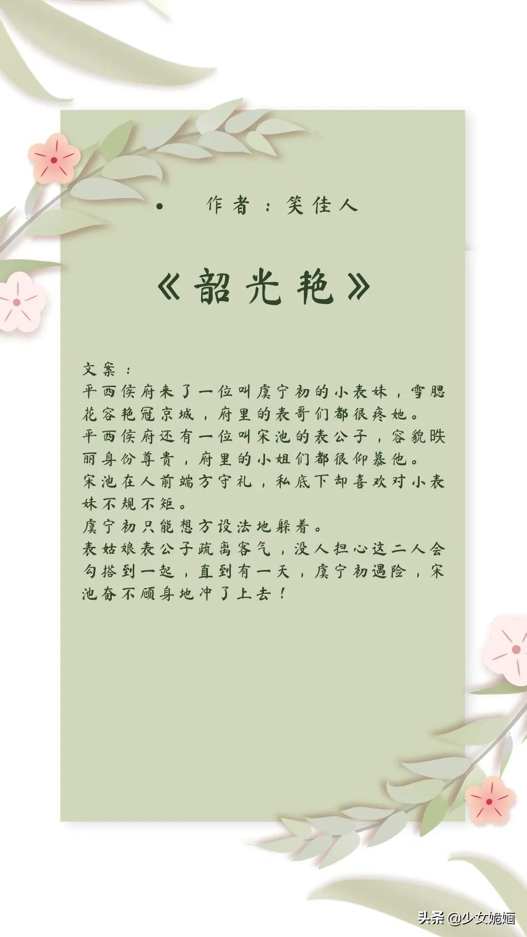 古言推荐!5本高质量欢喜小甜文:《韶光艳》《偏执兄长心尖宠》