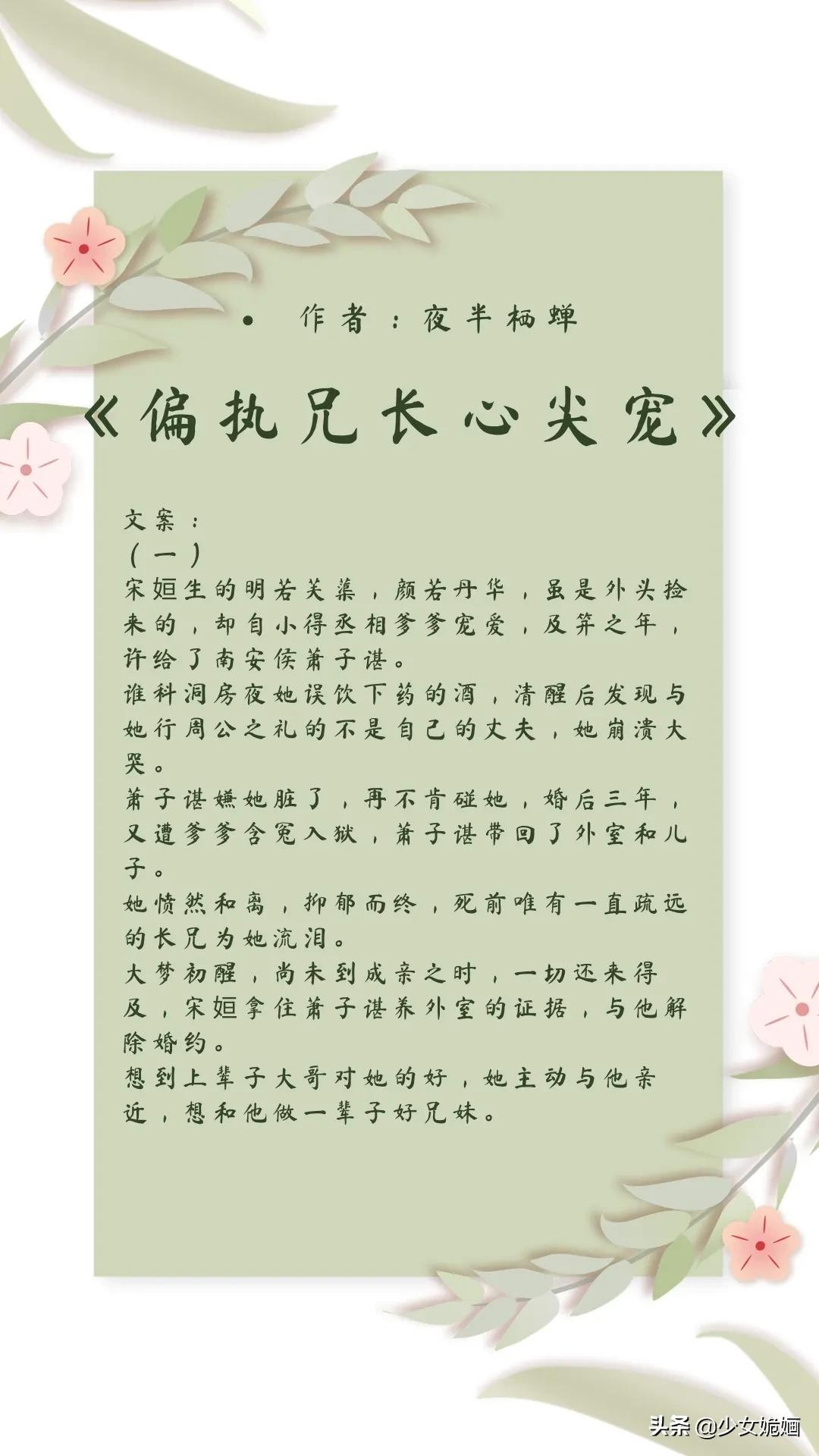 2、《偏执兄长心尖宠》作者:夜半栖蝉