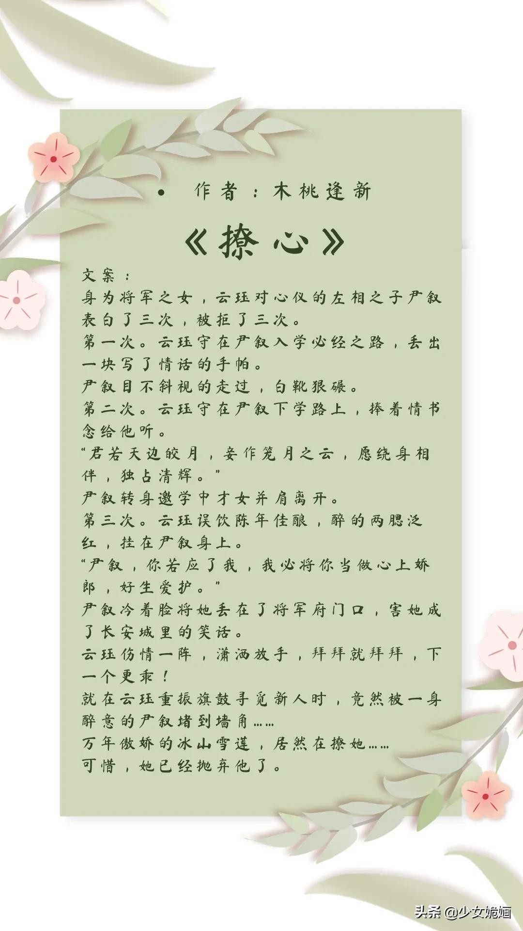 《韶光艳》、《偏执兄长心尖宠》、《把太子当替身后我跑了》、《撩心》、《女扮男装后我当上了驸马》
