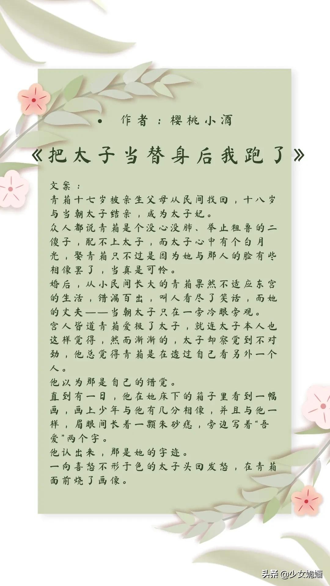 3、《把太子当替身后我跑了》作者:樱桃小酒
