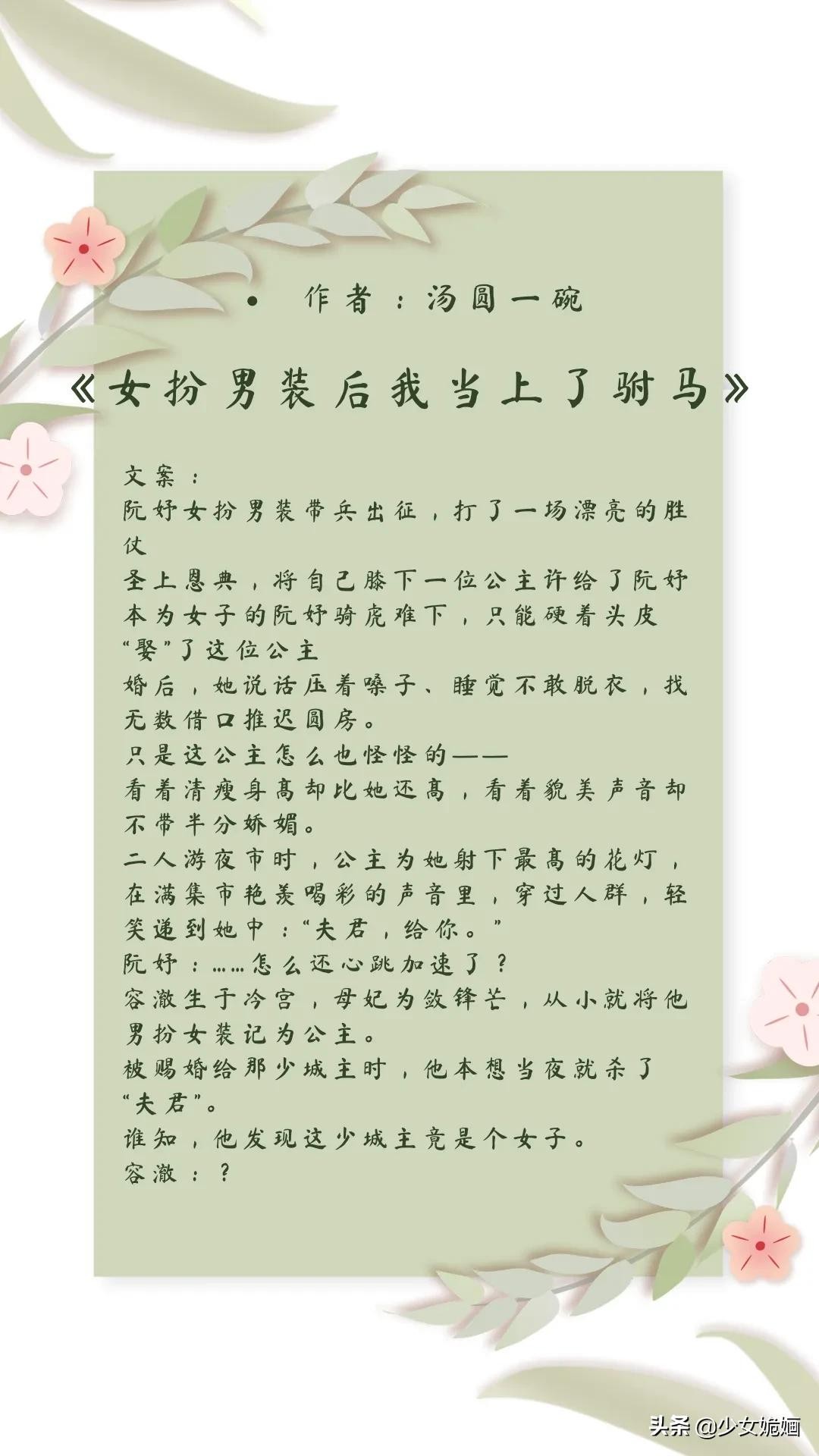 5、《女扮男装后我当上了驸马》作者:汤圆一碗