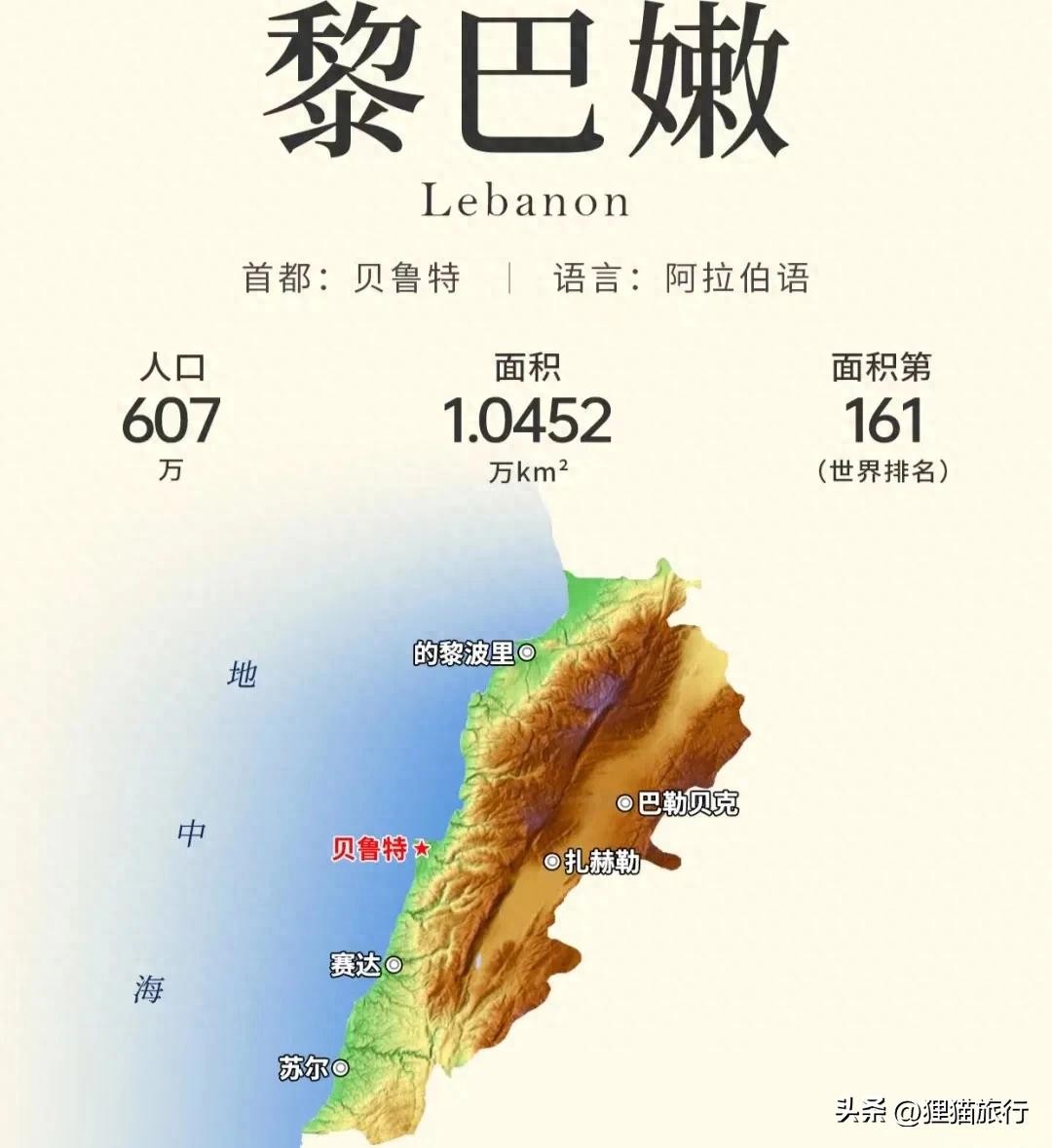 在中东地区,黎巴嫩的面积只有1万平方千米,总人口600多万,其中有200万人在首都贝鲁特。这是一个地中海东岸的小国家,有220公里长的海岸线。