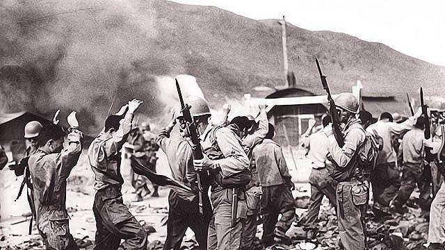 被俘虏,张文荣等人经过简单审讯后,被关进了釜山战俘集中营,不久,又被转移到济州岛战俘营,在这里,他看到了无数终身难忘的场景,比如被美军强暴的志愿军四姐妹、比如,被活埋的同志,比如,看守给打昏的同志强行在身上刺上“反攻抗俄”等字样,逼迫他们前往台湾“效忠党国”。