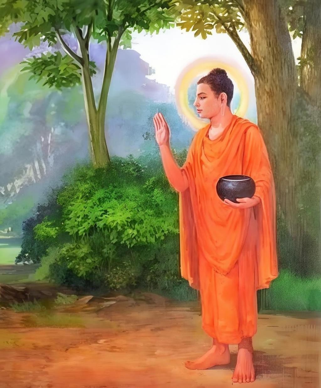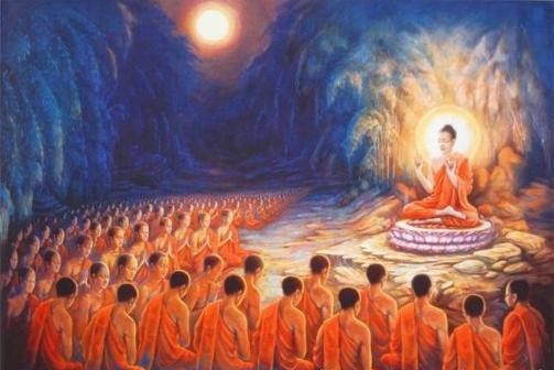 来到竹林精舍时,他看到佛陀正在为一群比丘讲法。