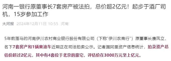 反观伊川,只是河南的一个普通县城,谁能料到其农商行的一把手竟能在京城坐拥如此天价豪宅,总价超 2.2 亿,这让无数在帝都为了一方栖身之所苦苦打拼的普通人望尘莫及,心中只剩无尽的震撼与酸涩。而这仅仅是浮于水面的冰山一角,洛阳尚有他的 3 套房产隐匿其后,此前名下更是已有 4 辆车被拍出,宾利、奥迪、特斯拉等豪车阵容,无声诉说着往昔的奢靡生活。可以想见,那些未曝光的现金、琳琅满目的收藏品以及名贵烟酒等财物,数量必定相当可观,只是暂时隐匿于暗处,未被大众知晓罢了。