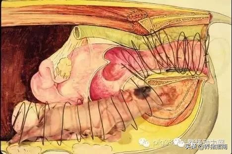 对于产仔数在14个以上的窝次,由于仔猪太多可能会将子宫向下坠,部分子宫可能会被挤到盆腔的下面,这样在子宫上形成了一个S弯。加上仔猪较多,这时候子宫的收缩不足以将仔猪推过盆骨前缘。通常这种情况下,对第一只仔猪进行助产,使S弯恢复变直即可。