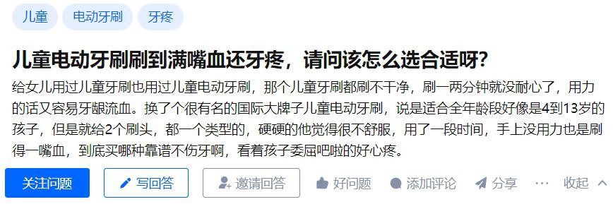 虽然电动牙刷好用,如果选择了劣质产品,可能会对口腔造成过度刺激,尤其是那些本身就存在口腔疾病的孩子,使用不当可能会加重他们的牙齿问题,导致健康状况进一步恶化。