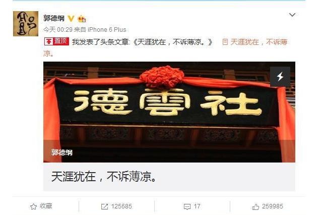 与曹云金咄咄逼人的言论相比,郭德纲的发文更加凸显胸怀。
