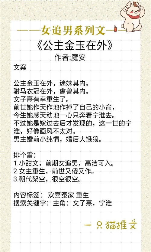 女主是公主,男主是新科状元郎。前世女主嫁给了男主,但女主嫌弃男主,男主对她可好了,可女主不仅不待见他还出轨了,后来渣女被渣男抛弃追悔莫及,一朝重生她决定好好对待男主,主动追求他,把他宠上天,算她弥补上辈子的过错吧,一般,书荒可看吧。