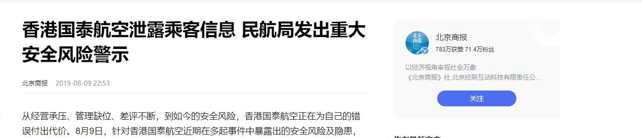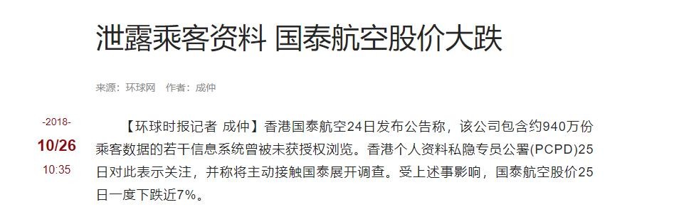众所周知,安全、诚信都是一个公司赖以生存的基石,但国泰航空却在2018年爆出惊天丑闻:940万乘客信息泄露!