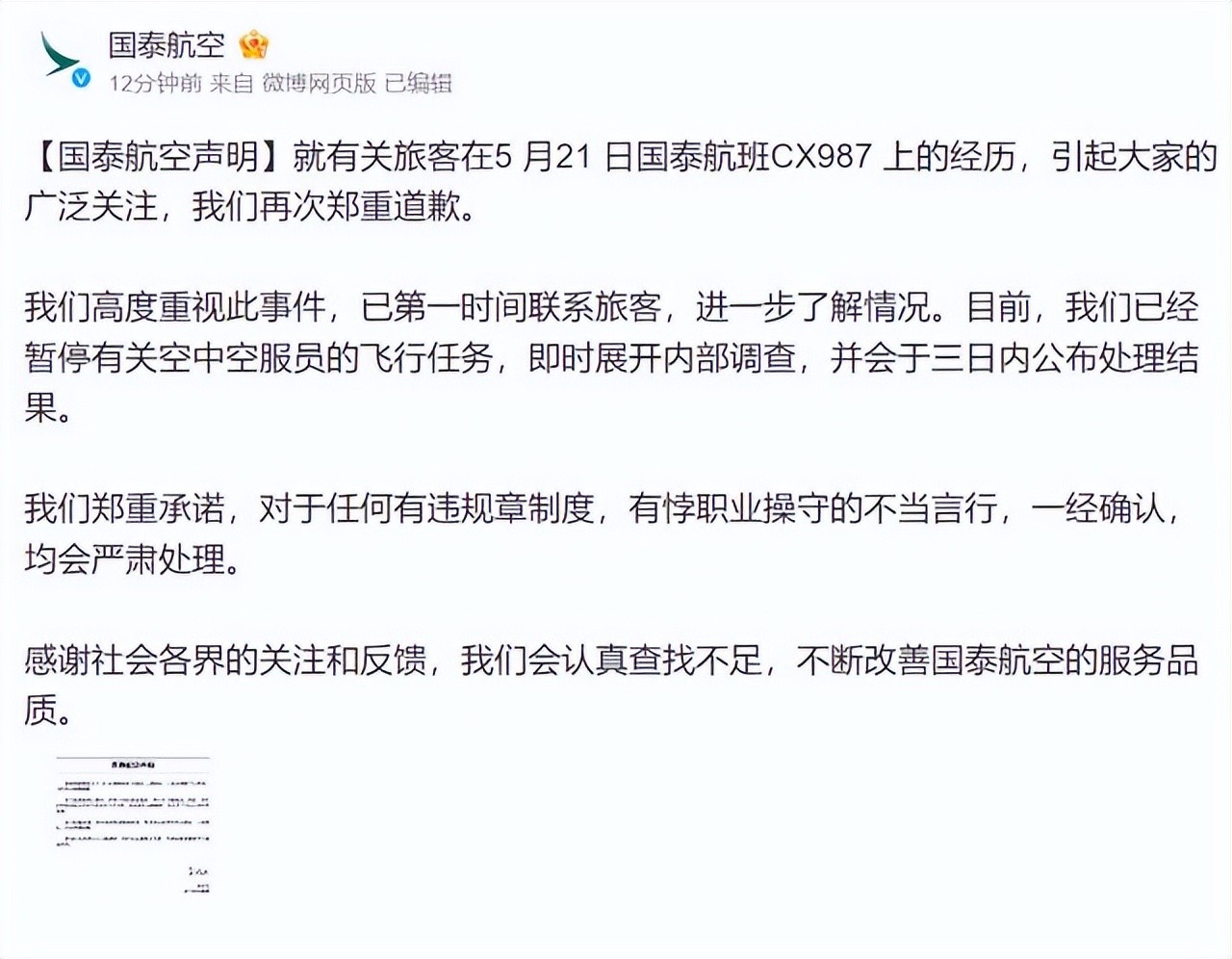 事件发生后,国泰航空虽然迫于压力解雇了涉事空姐,并发布了道歉声明,但这难以挽回失去的民心,一句道歉能弥补乘客受到的伤害吗?