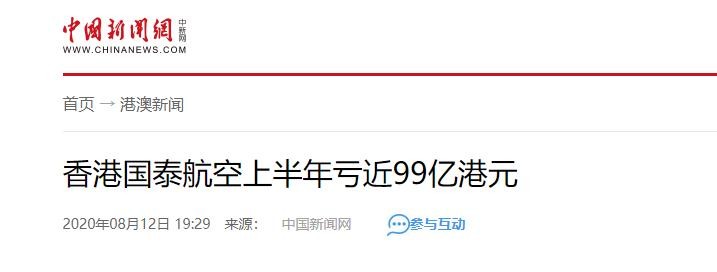 而国泰航空,虽然没有达到破产的层面,但连年亏损、股价下跌等都在间接影响着国泰航空,国泰航空也因此陷入了内忧外患的泥潭,仅2020年上半年,国泰航空就亏损了近99亿港元。
