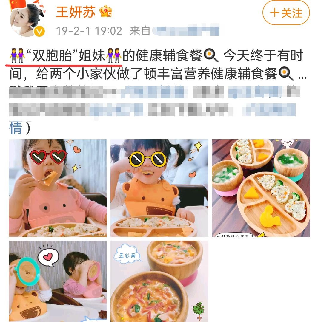 19年王妍苏在微博晒了两个女儿的照片,首次向外界透露自己已经当妈的消息,而且她生的还是双胞胎,两个女儿都长得很可爱。