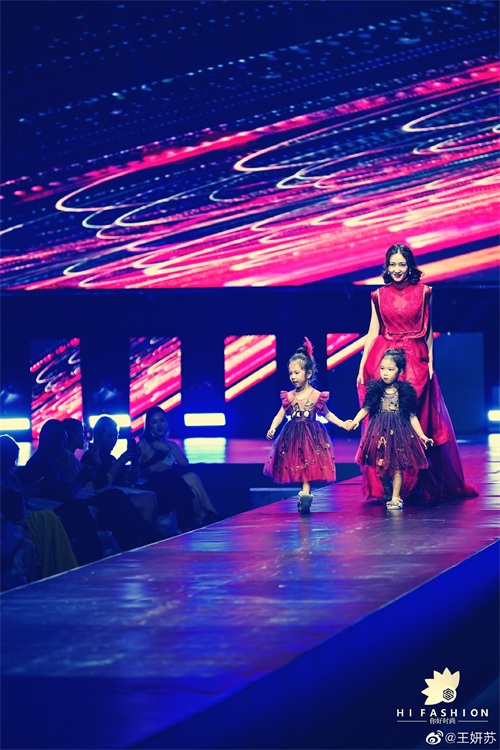 为了锻炼孩子的胆量和自信心,她还带着她们一起上台走过秀,她本来就是模特出身,从小就把两个女儿带上T台,将来她们也可以往这行发展。