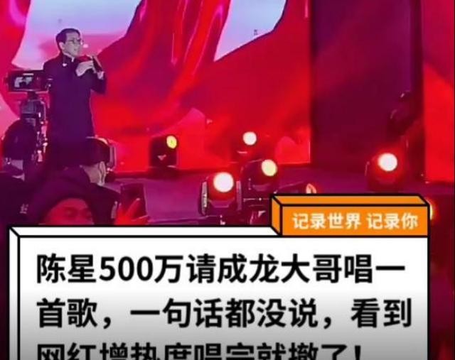 之前有消息称,网红陈星花500万邀请成龙唱一首歌,全程一句话没说,只一首歌就挣了一套房钱。