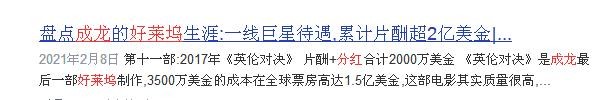 实际上,成龙的出场费很有可能要高于这个数字。
