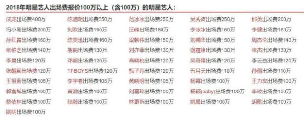 据网上资料显示,成龙出场费非常高,2018年就以400万成为明星中最高的。