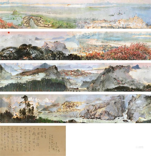 【二十一】长江万里图。吴冠中作品。2011年,北京艺融以1.495亿元拍出。作品创作于1973年到1974年,打破油画二维平面创作范畴,5米长卷将时间和空间融合在一起。