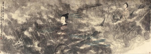 【九】云中君和大司命。傅抱石作品。2016年,保利拍卖行以2.3亿元拍出。1954年,傅抱石根据郭沫若《屈原赋今译》内容,以屈原《九歌》里面的云中君、大司命两个神话人物为题材,创作的人物画。