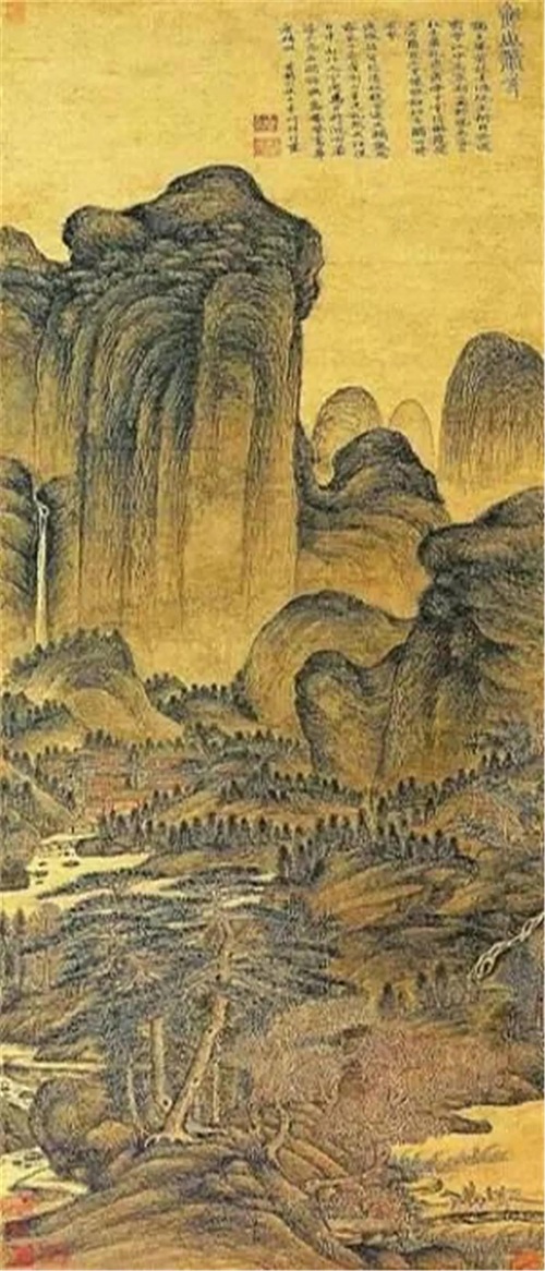 【二十二】秋山萧寺图。王蒙作品。2010年,保利拍卖行以1.3664亿元拍出。作品以干湿浓淡和不同质感让画面错落有致,是元代绘画流传至不可多得的佳作。