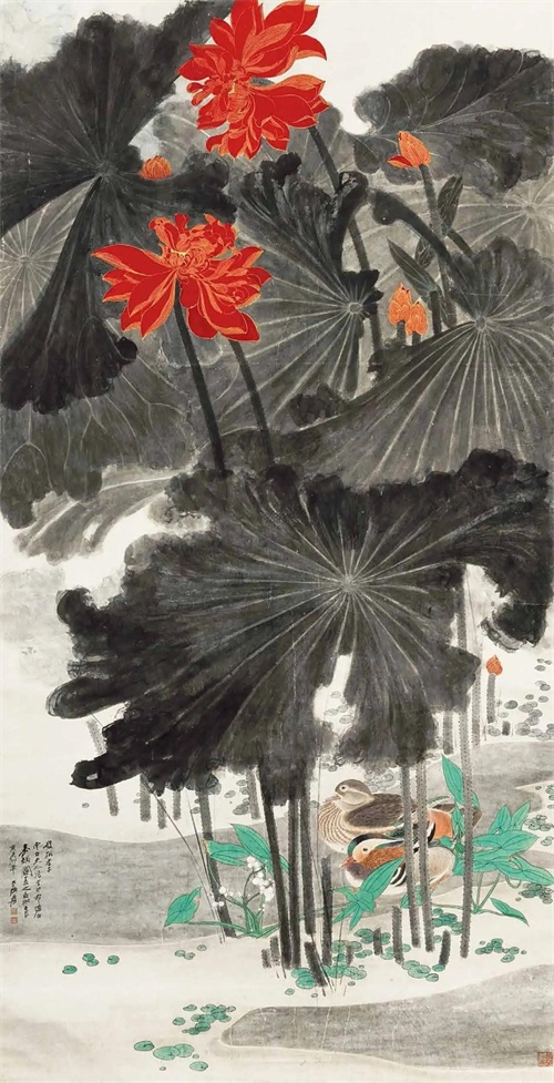 【十八】嘉耦图。张大千作品。2011年,香港苏富比以1.9106亿元(港币)拍出。作品层次井然、气度宏大,为张大千泼彩泼墨的代表作。