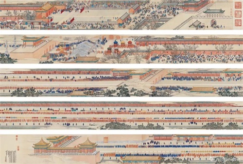 【二十四】平定西域献俘礼图。徐扬作品。2009年,中贸圣佳以1.34亿元拍出。作品色彩鲜艳饱满,用笔细致入微。