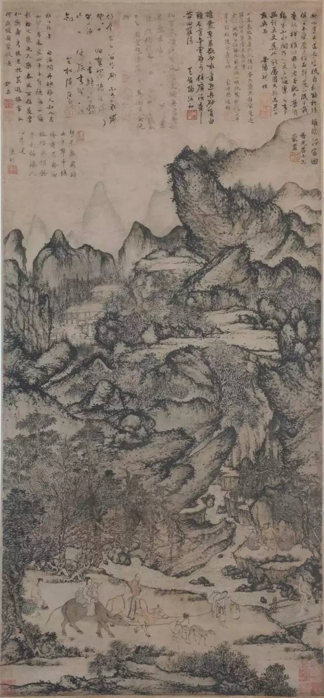 【二】稚川移居图。王蒙作品。2011年,保利拍卖行以4.025亿元拍出。作品描绘了东晋时期葛洪携家眷移居罗浮山、修道的故事。作品上有多名画家、作家的题诗及收藏家的收藏印,极为难得。