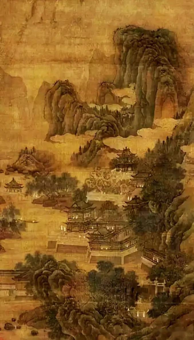 【四】万岁山图稿本。房大年、文宗帝作品。2010年,北京九歌以3.348亿元拍出。作品呈现出远处山间白云蒸腾,直如仙境一般的动人景像。