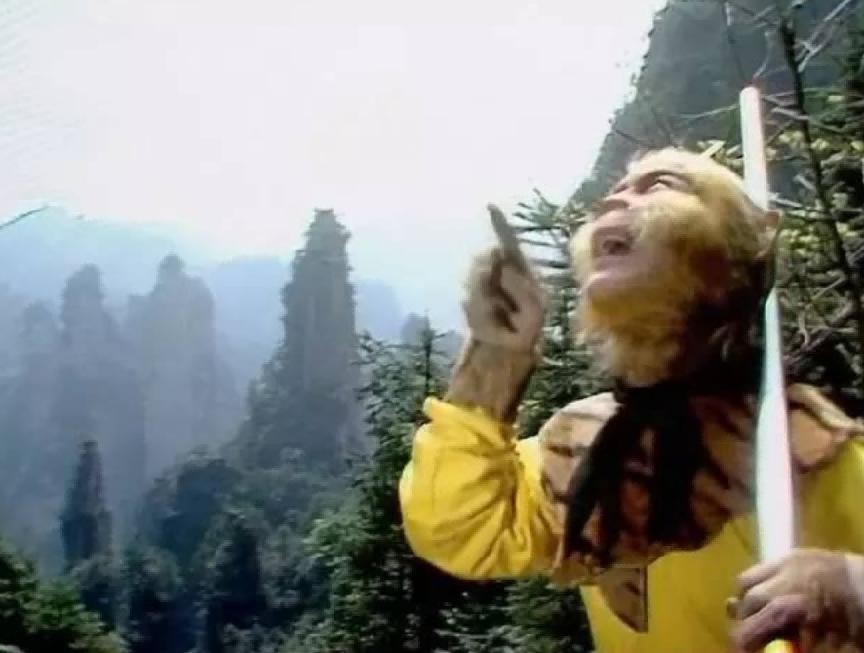 于是为了拍摄实景,整个剧组成百上千号人走遍26个省份,攀登当时尚未开发的九华山、张家界,常面临无食宿、无道路的困境,馒头咸菜可以说是家常便饭。