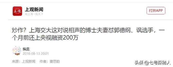 炒作?上海交大这对说相声的博士夫妻怼郭德纲、讽选手,一个月前还上央视融资200万纵览2018-08-13 20:01:上观新闻 作者:董思韵