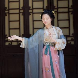 上襦变化主要在领型及门襟上,下裙长至鞋面。大凡衣短则裙长,衣短至腰间,裙长至脚踝骨之下;衣长则裙阔,衣长时,长到臀至膝下,而裙露仅几寸,裙子不必显出特色。襦裙忌讳上下平分秋色,会显得呆板少变化。