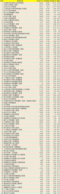 风湿病是一组侵犯关节、骨骼、肌肉、血管及有关软组织或结缔组织为主的疾病,其中多数为自身免疫性疾病。自体免疫性疾病是一种人体内自己的免疫系统攻击自己身体正常细胞的疾病,就是正常的免疫能力下降,而异常的免疫能力却突显的一种问题。包括乳糜泻、胰岛素依赖型糖尿病、系统性红斑性狼疮、修格连氏综合症或干燥综合症、多发性硬化症、桥本氏甲状腺炎、葛瑞夫兹氏病、自发性血小板缺乏紫斑症、类风湿性关节炎、再生不良性贫血。中国医学科学院采用科技量值(STEM)对全国医院进行评估和排名(具体评估体系详见本人之前文章“科技量值”),风湿病学与自体免疫病学排名前100医院如下: