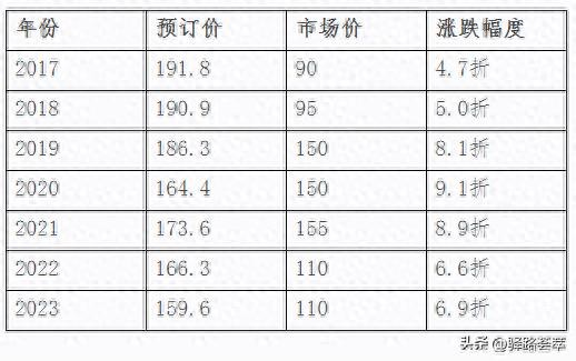 2017-2023年,这7年的邮票预订年册价格怎样了?