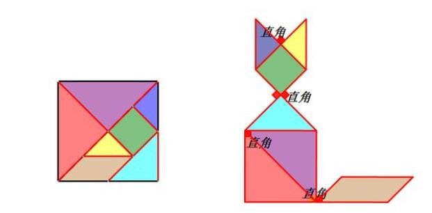用七巧板拼成各种图案的同时,就能拼出直角、锐角和钝角!