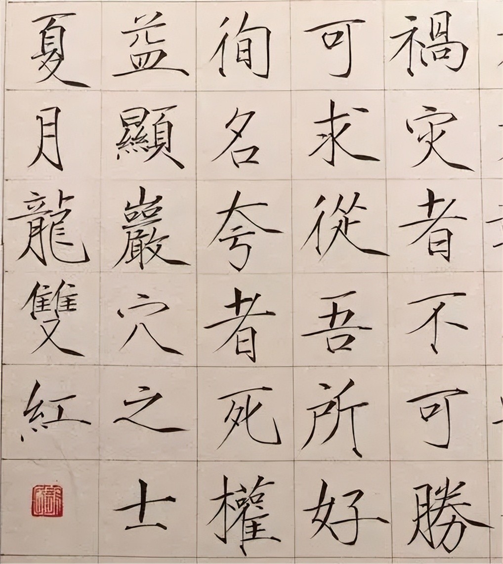 笔势凝重,行笔迅速,写出一波三折、铁画银钩之感,有着宝剑出锋之势,符合当代人“骨感美”的思想,因此受到当代年轻学者的喜欢,加上它点画硬朗,因此用在毛笔、硬笔上都能书写,所以很多学生也常常练习。