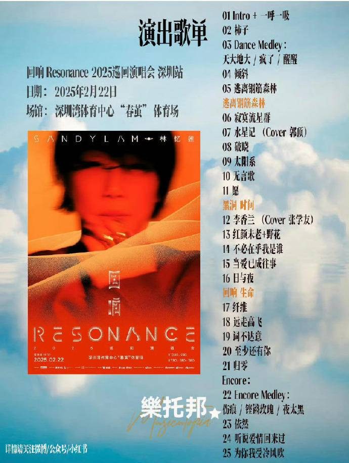 根据此前公开的林忆莲深圳站演出歌单,共有25首歌曲,上半场演唱的歌曲比较冷门,如《柿子》《破晓》《愿》等。下半场的热门歌曲其实不少,比如《当爱已成往事》《不必在乎我是谁》《至少还有你》《为你我受冷风吹》等,都是传唱度超高的经典曲目,整场演出大约两个小时,林忆莲演唱功夫扎实,据现场观众反馈,林忆莲的演唱基本是一气呵成,很少用聊天、互动来浑水摸鱼,称得上是诚意满满的演唱会。吐槽的网友认为这场演唱会的歌单“问题很大”,上半场曲目太冷门对路人观众很不友好,直接劝退,因情怀买票进场结果听到的都是很陌生的歌曲,会觉得不满意很正常。但也有人不这么认为,毕竟整场演出不是全程在唱冷门歌曲,下半场的热门金曲非常适合大家跟着唱,“该唱的都唱了怎么还会吵起来?这歌单挺好的,照顾了老观众又唱了年轻观众喜欢的新歌。”