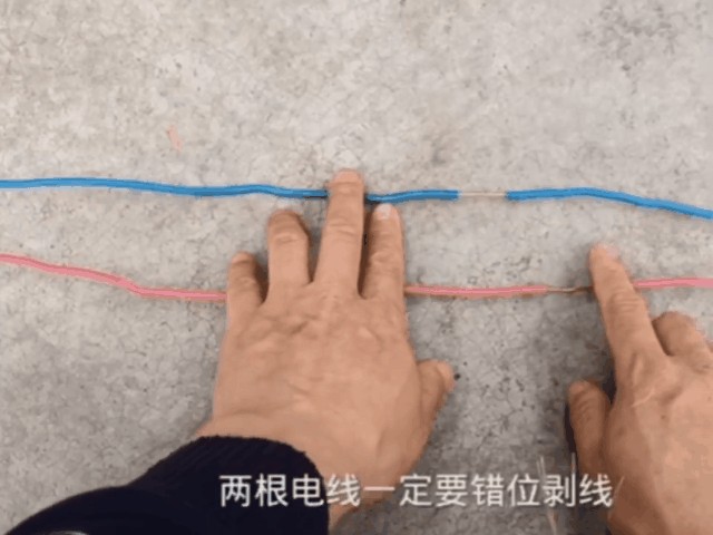把主线硬铜线剥去线皮,两根电线(即火零线)一定要错位剥线,否则后期使用时很容易出现发热从而导致绝缘胶带融化发生短路事故。