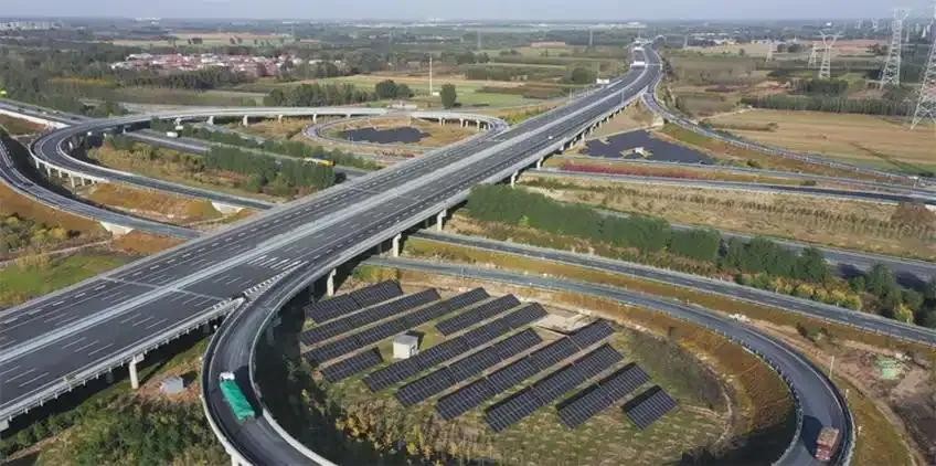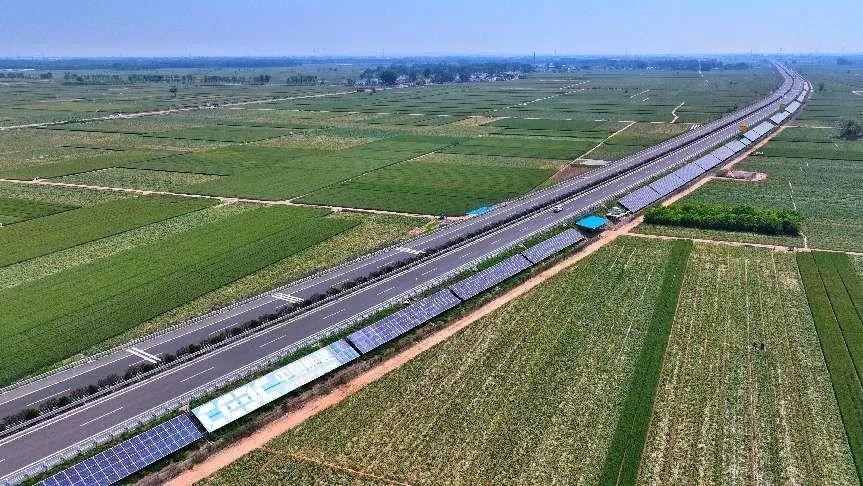 这条公路采用了承载式光伏路面技术,路面由三层构成:最表层为透光混凝土路面,具有高强度和高透光率;中层为光伏板,可以利用太阳能发电;底层为绝缘层。这样的设计既保证了道路的通行安全,又实现了太阳能的利用。