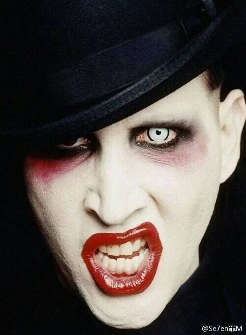 变态而妖冶,在曼森的妆容造型上也得以体现。